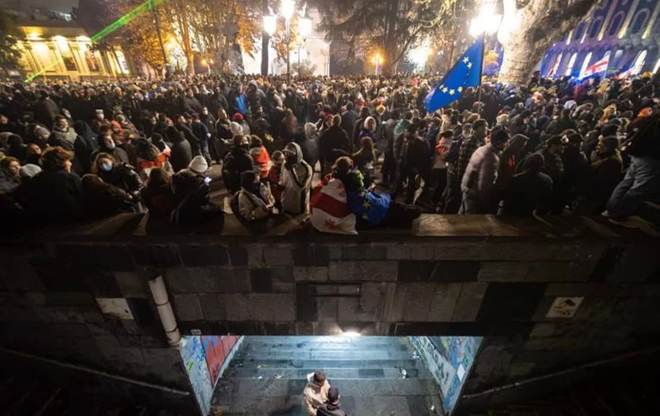 Вечером 7 декабря тысячи людей в очередной раз собрались в центре Тбилиси на акцию протеста из-за отсрочки новым правительством переговоров о вступлении Грузии в ЕС. На активистов и журналистов нападают неизвестные лица в масках. rbc.ua »