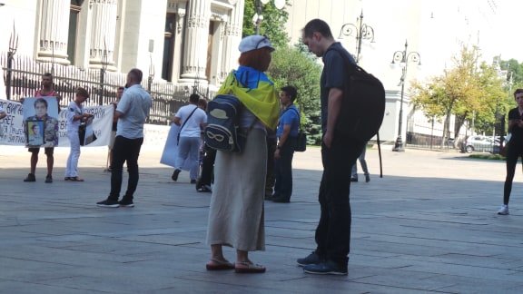 Вместе с другими участниками пикета наши земляки требуют активизировать переговоры по обмену пленными. 0564.ua »