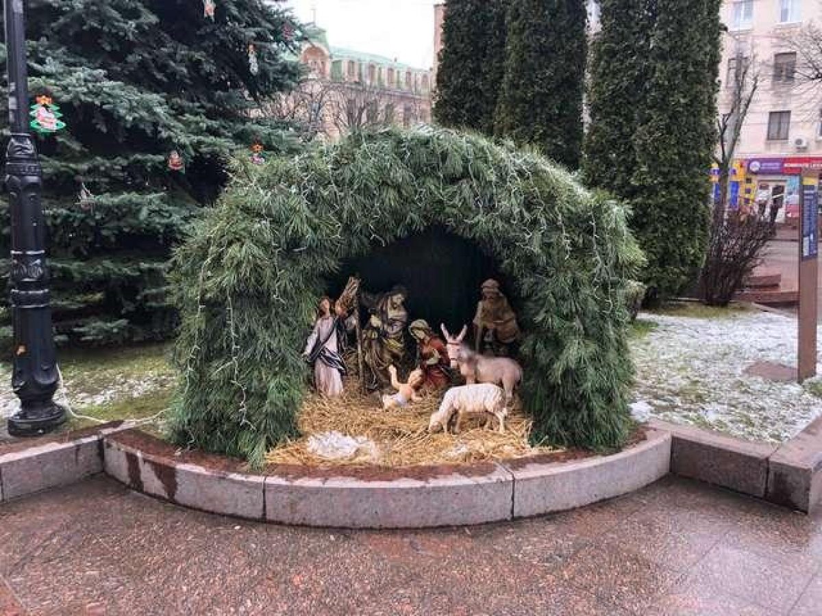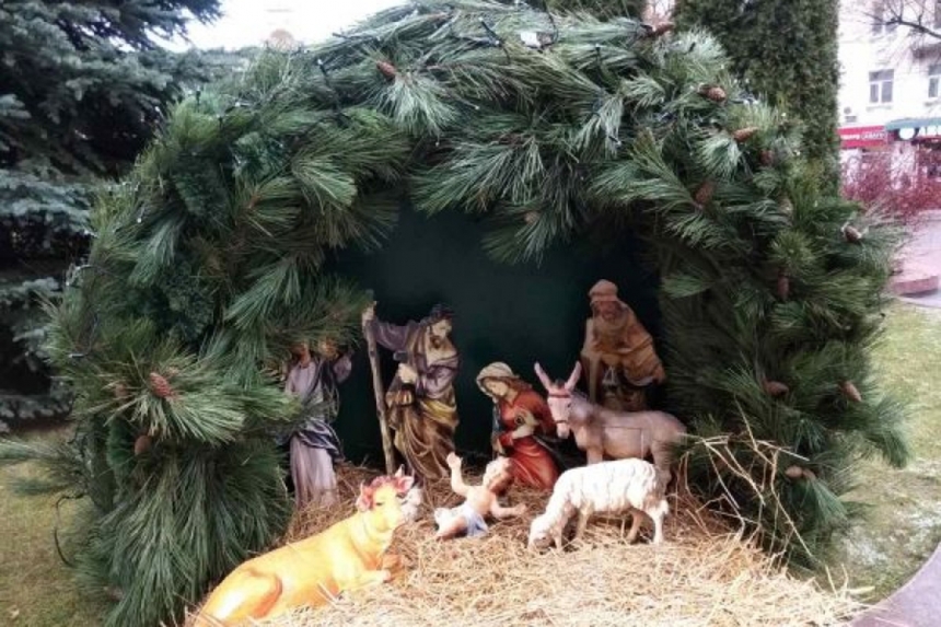В Кропивницком из вертепа под горсоветом украли пластмассовую корову и ягненка (фото, видео)