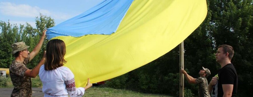 Жёлто-голубой стяг появился в честь четырёхлетия освобождения Авдеевки на въезде в город 06236.com.ua »