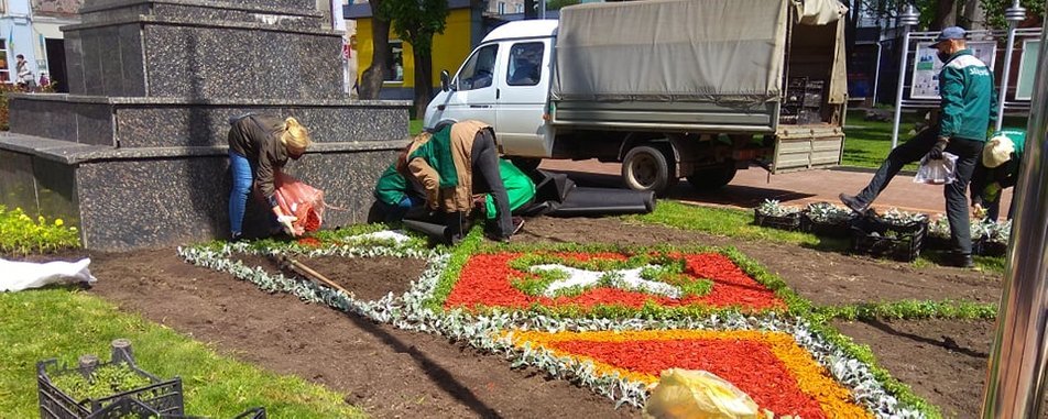 До Дня вишиванки сьогодні, 21 травня, працівники "Зеленбуду" створюють у центрі Сум квітник-вишиванку 0542.ua »
