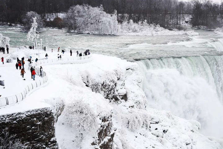 Чоловік 26 січня стоїть біля замерзлого Джуринського водоспаду, який розташований між містечками Нирків та Устечко на Тернопільщині. Через мінусову температуру льодяна кірка повністю вкрила водоспад та заморозила стікаючі потоки води. 24tv.ua »