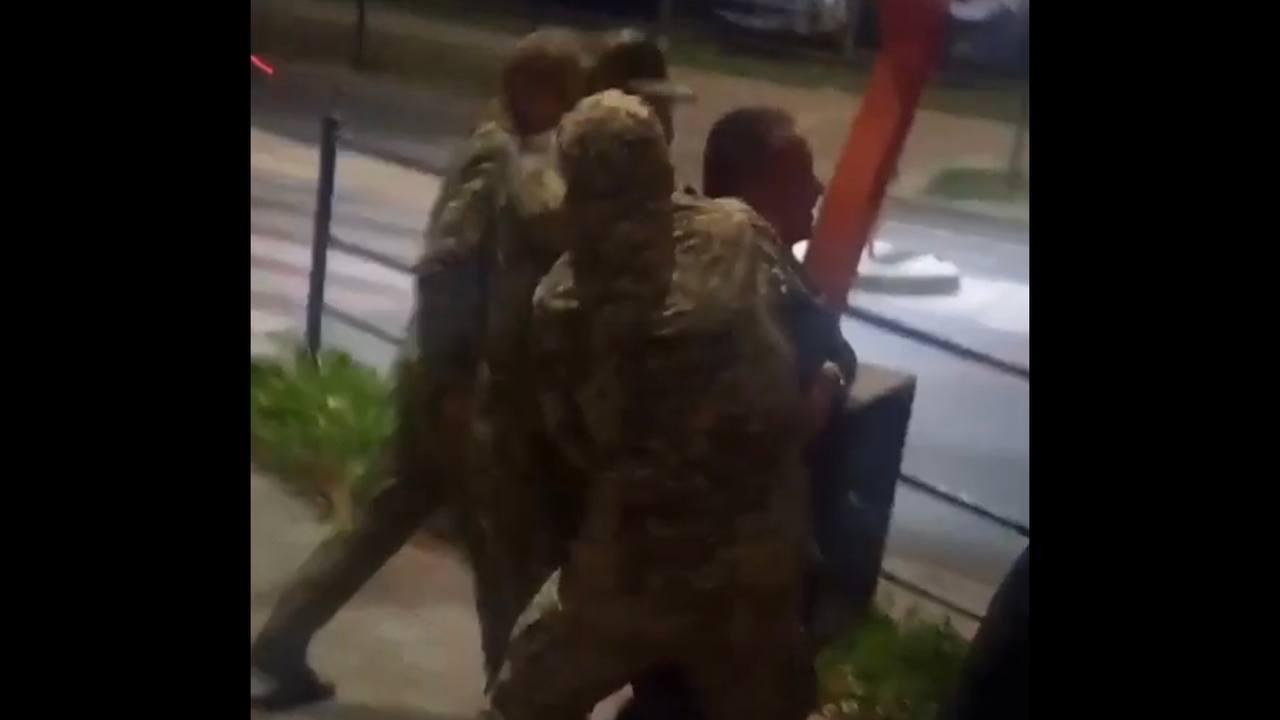 На кадрах, распространяющих в сети, видно, как мужчина в военной форме нападает на гражданского. politeka.net »