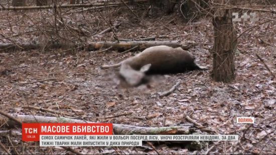 Животных в вольере лесничества ночью застрелили неизвестные. Сообщается, что все убитые лани – самки. k.img.com.ua »