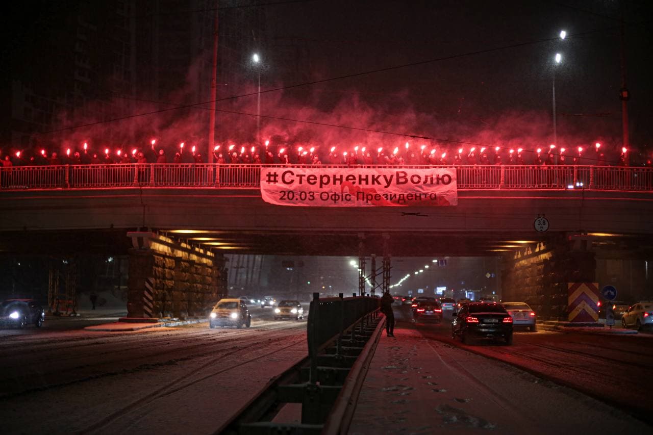 Участники акции протеста двинулись к Офису Генерального прокурора с требованием выпустить Сергея Стерненко на волю. dialog.ua »