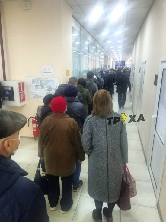 Десятки местных жителей толпятся в коридорах учреждения, чтобы сдать отчеты до введения жесткого карантина. ru.tsn.ua »