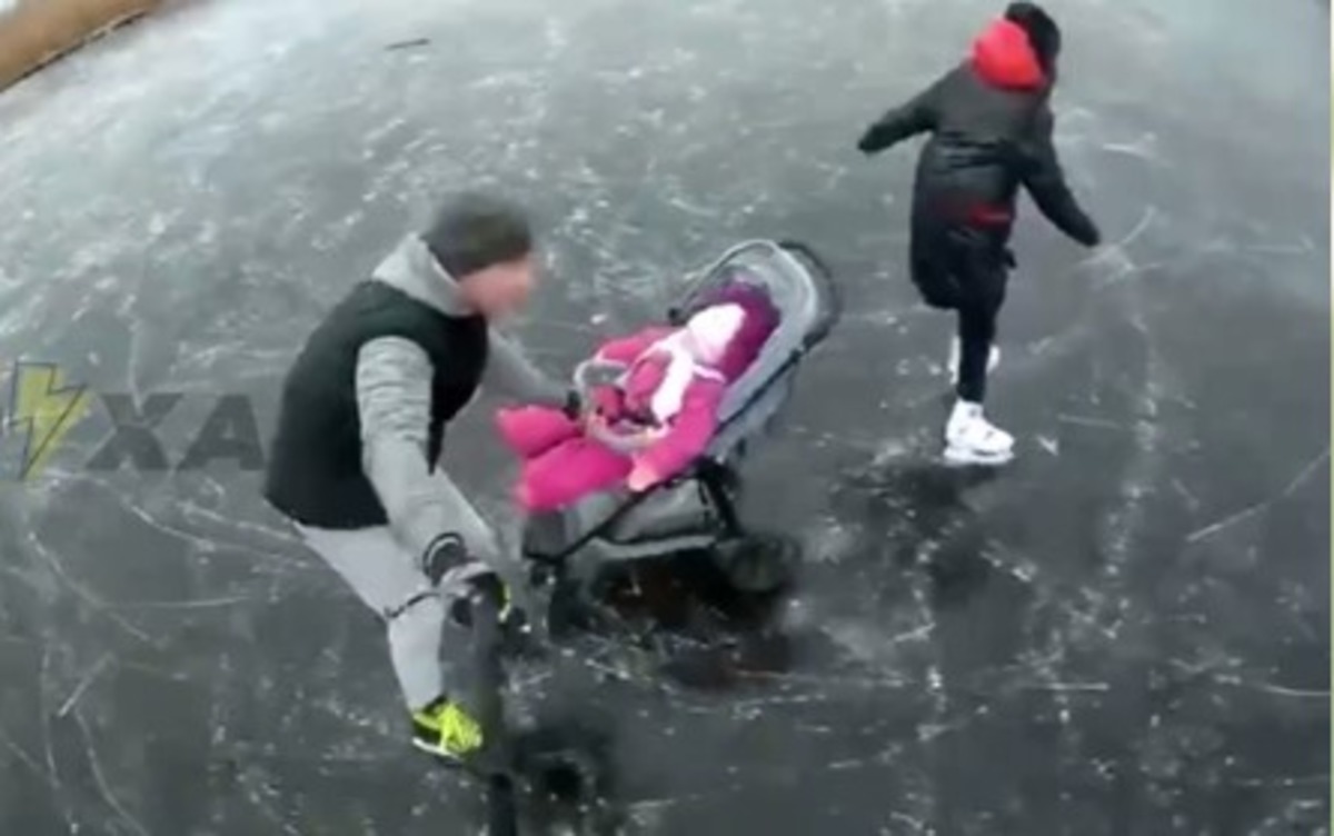 Молодая пара взяла маленькую дочь и отправилась кататься на льду на Комсомольское озеро focus.ua »