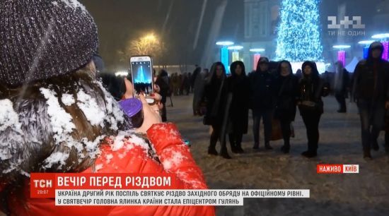 Киевляне встретили первое Рождество с глинтвейном и "праздничным" снегом