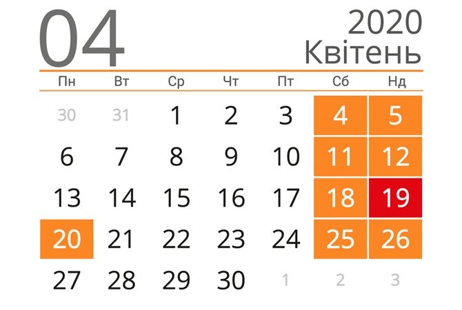 В 2020 году Пасху православные христиане празднуют 19 апреля, поэтому будет еще один выходной в понедельник, 20 апреля. Католики Пасху празднуют на неделю раньше – 12 апреля, впрочем, дополнительный выходной не предвидится. 24tv.ua »