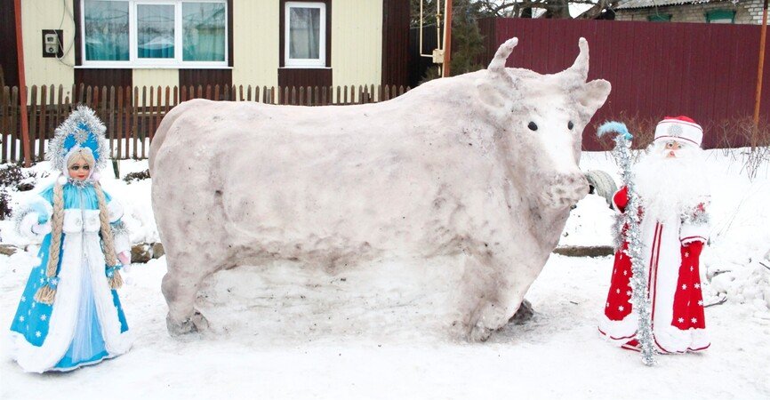 В городе Попасная местная жительница создала скульптуру быка из снега 0642.ua »