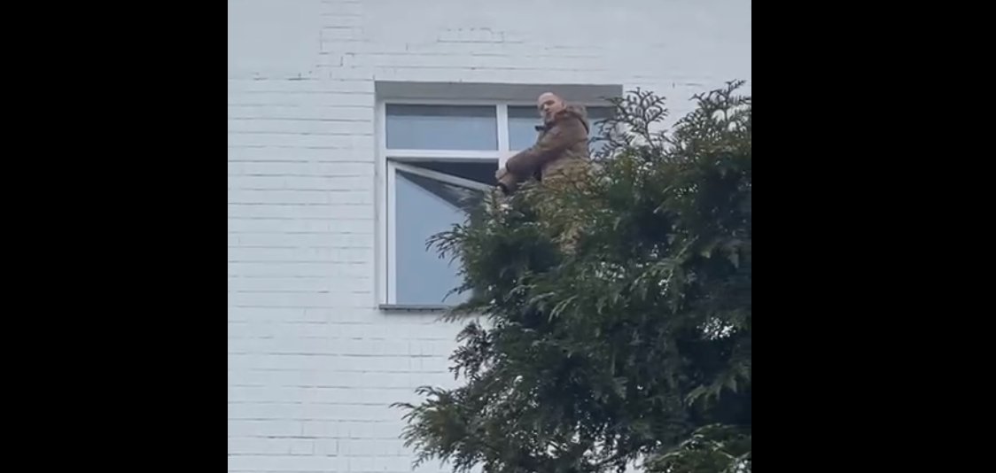 Очевидцы сняли мужчину, стоявшего в окне второго этажа, и грозившегося спрыгнуть вниз. k.img.com.ua »