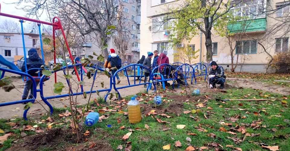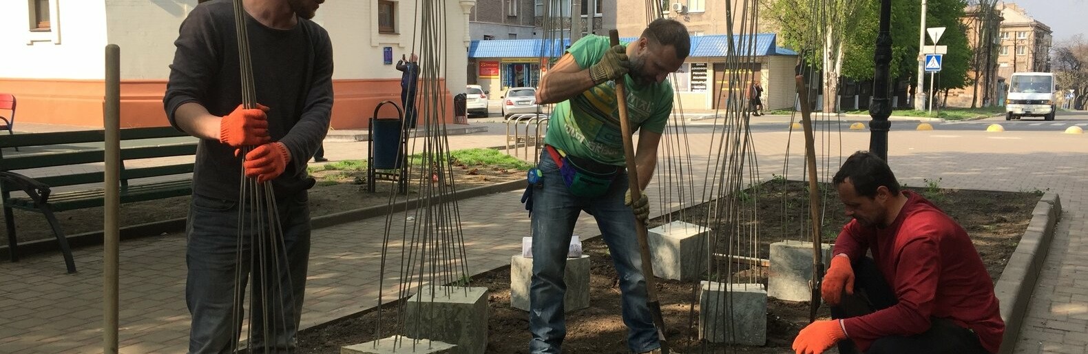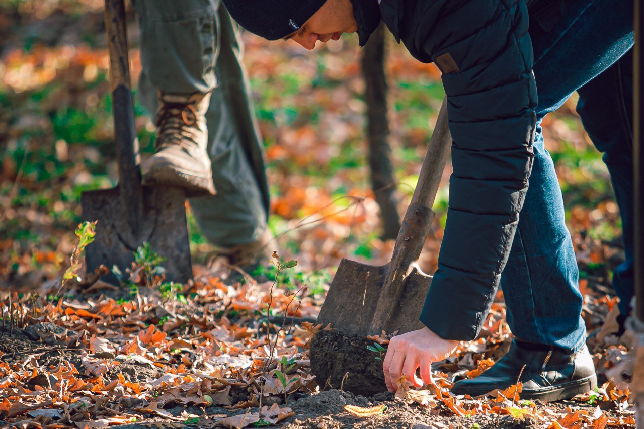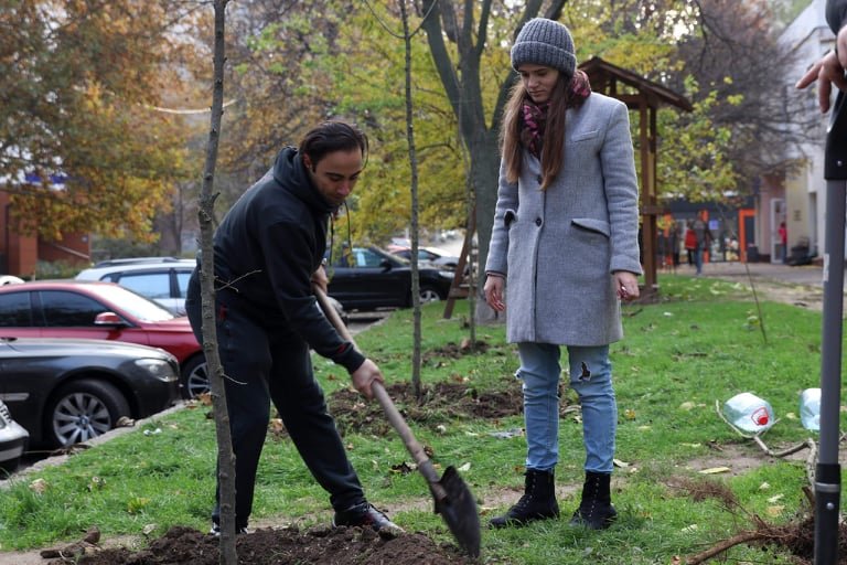 Киевские коммунальщики высадили на склонах возле памятника Магдебургского права красные дубы и 70 кустов (фото)