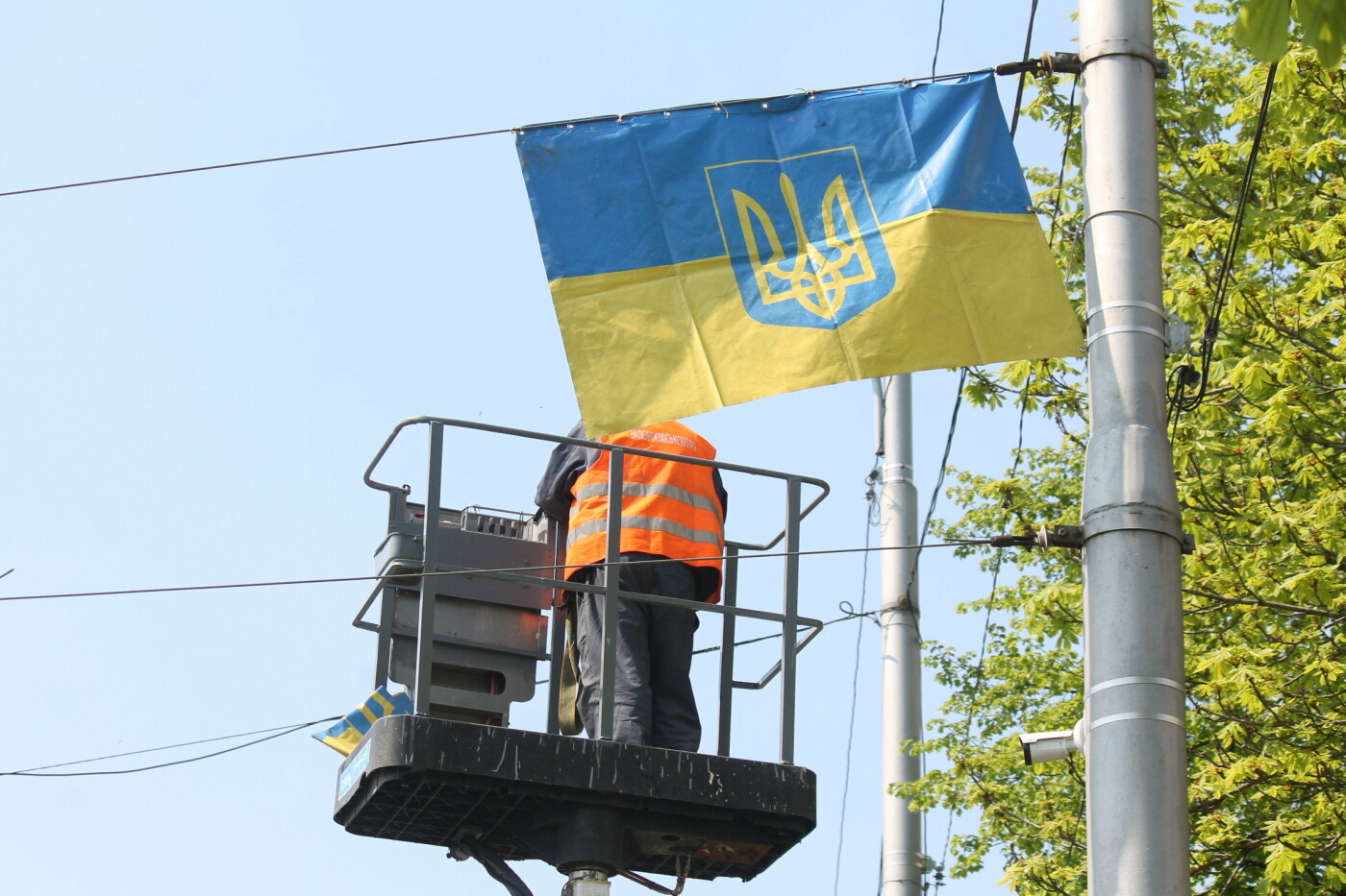 В Запорожье коммунальщики вывешивают на проспекте Соборном флаги Украины 061.ua »