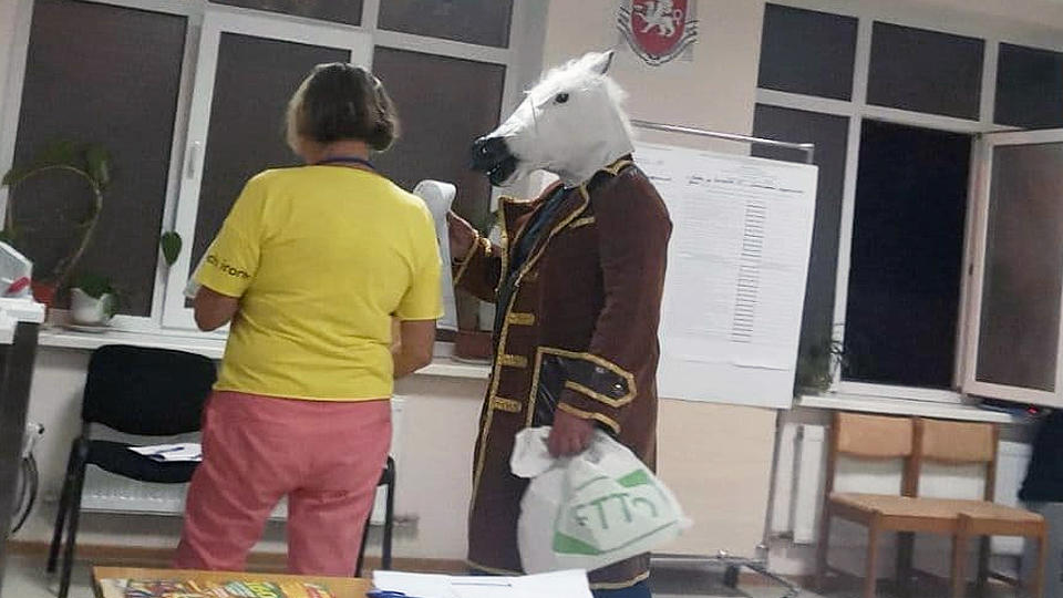 Мужчина не только развеселил членов комиссии, но и проголосовал. На другой участок в Ялте приехали молодожены. focus.ua »