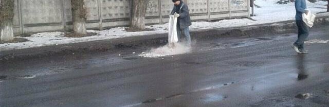 Мужчина нашел "оригинальный" способ борьбы с ямами на дорогах (фото, видео)