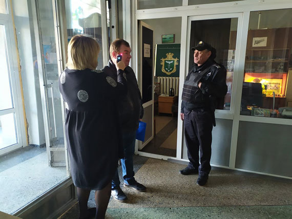 Сьогодні на вході до міськради з'явився пост з медпрацівником. 6262.com.ua »