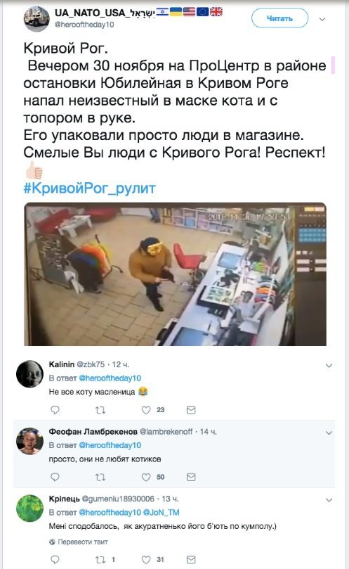 "Просто они не любят котиков": видео задержания в Кривом Роге грабителя в маске комментируют в соцсетях, - ВИДЕО