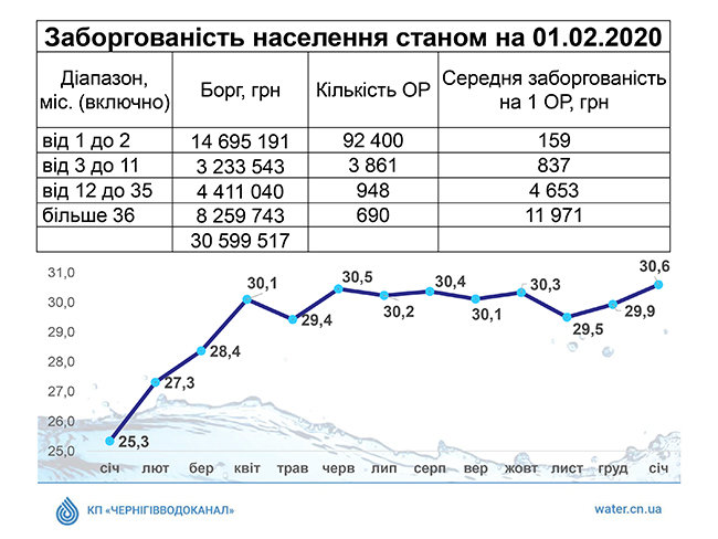Задолженость черниговцев перед Чекрниговводоканалом - больше 30 миллионов гривен