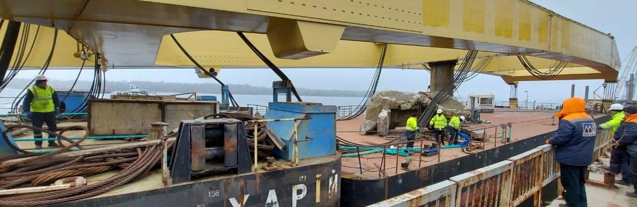 Плавкран "Захарий" приступил к монтажу временных опор после небольшого перерыва. 061.ua »