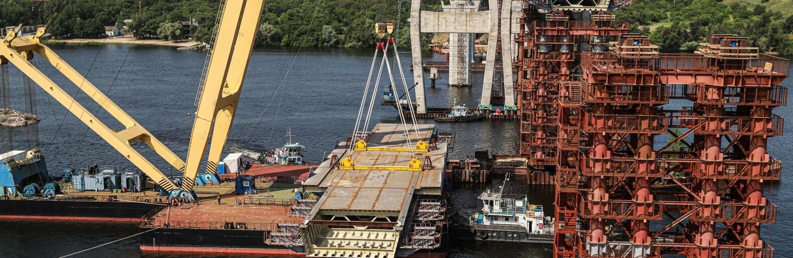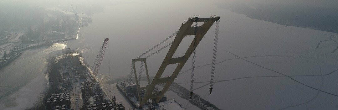 Плавкран временно приостанавливает свою работу по строительству вантового моста 061.ua »