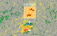 Это редкое "перпендикулярное солнечное пятно" с магнитными полюсами, ортогональными к экватору Солнца. k.img.com.ua »