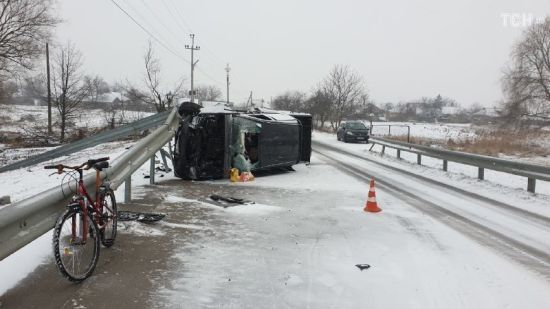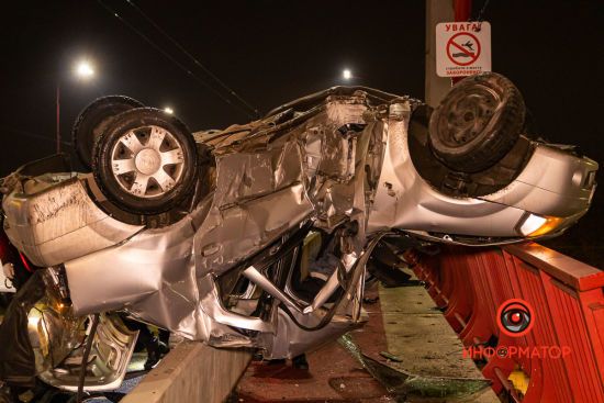 Транспортное средство перевернулось и врезалось крышей в разделитель. ru.tsn.ua »
