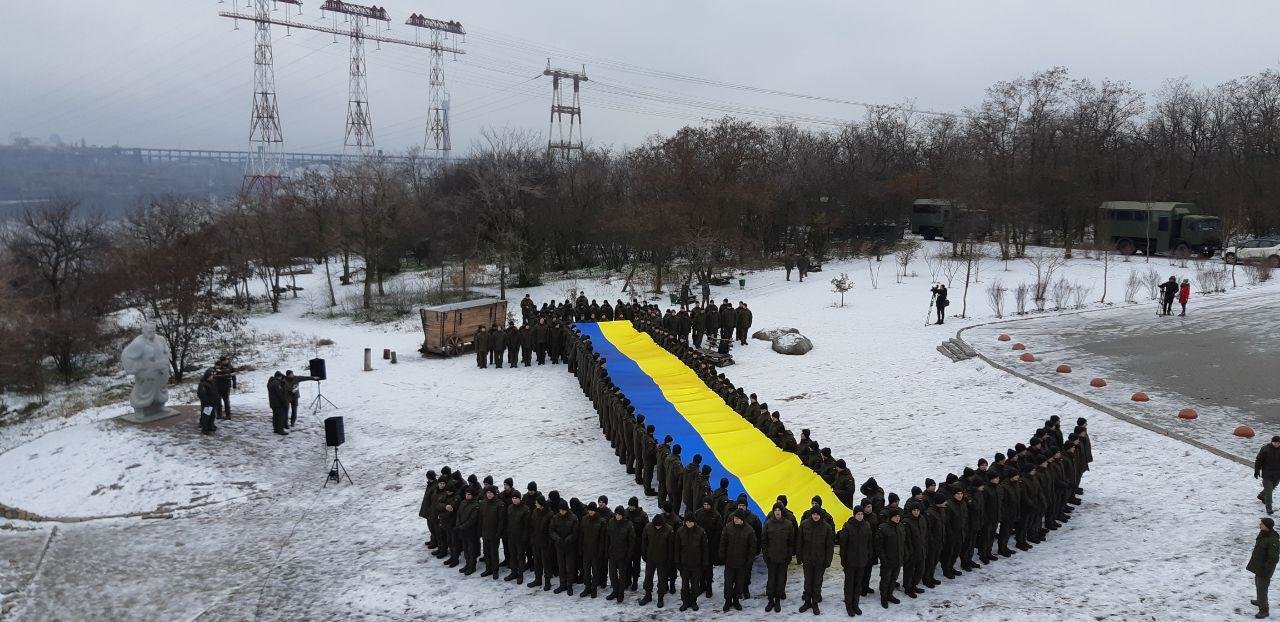 200 военнослужащих из воинских частей 3029, 3026 и 3033 провели флешмоб, выстроились в форме большого якоря. 061.ua »