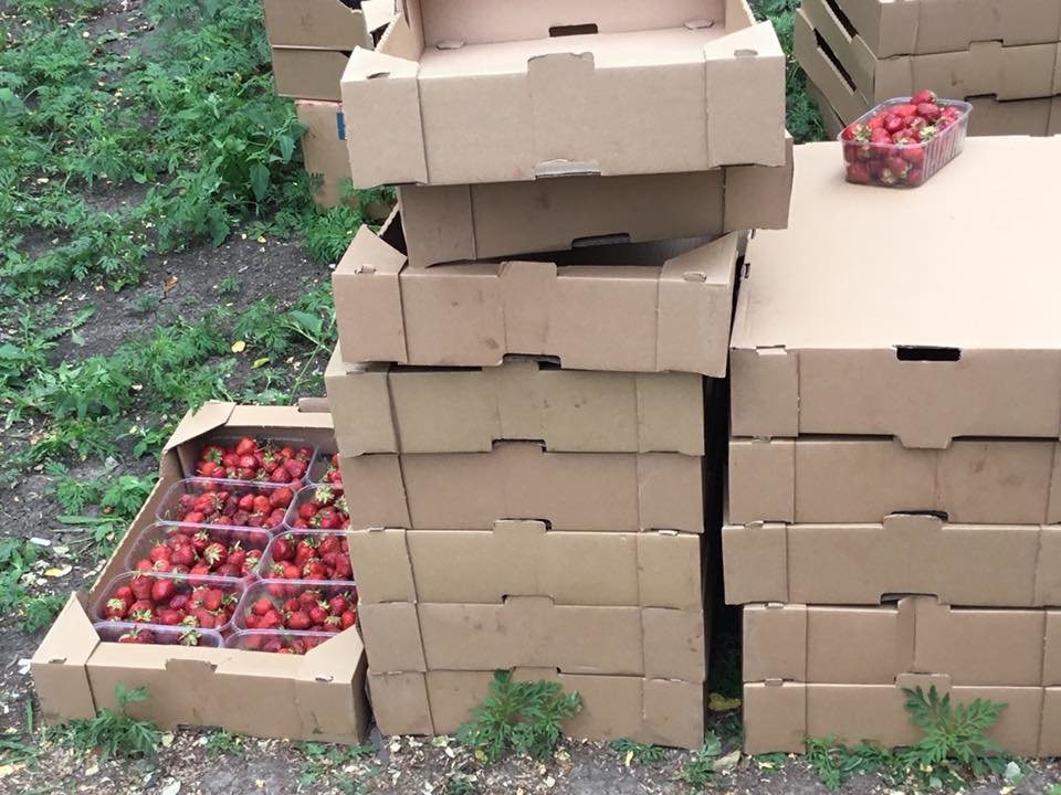 На зеленой зоне в самом центре города торговец разместил 31 ящик с сезонной ягодой 0629.com.ua »