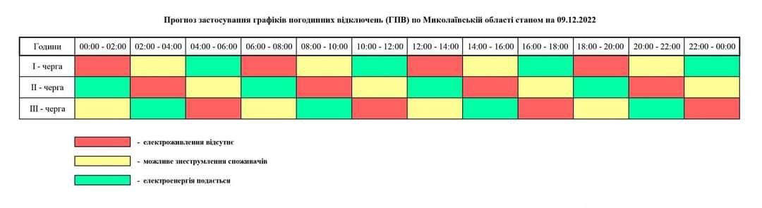 Прогноз застосування графіків погодинних відключень електроенергії по Миколаївщині на 8 грудня