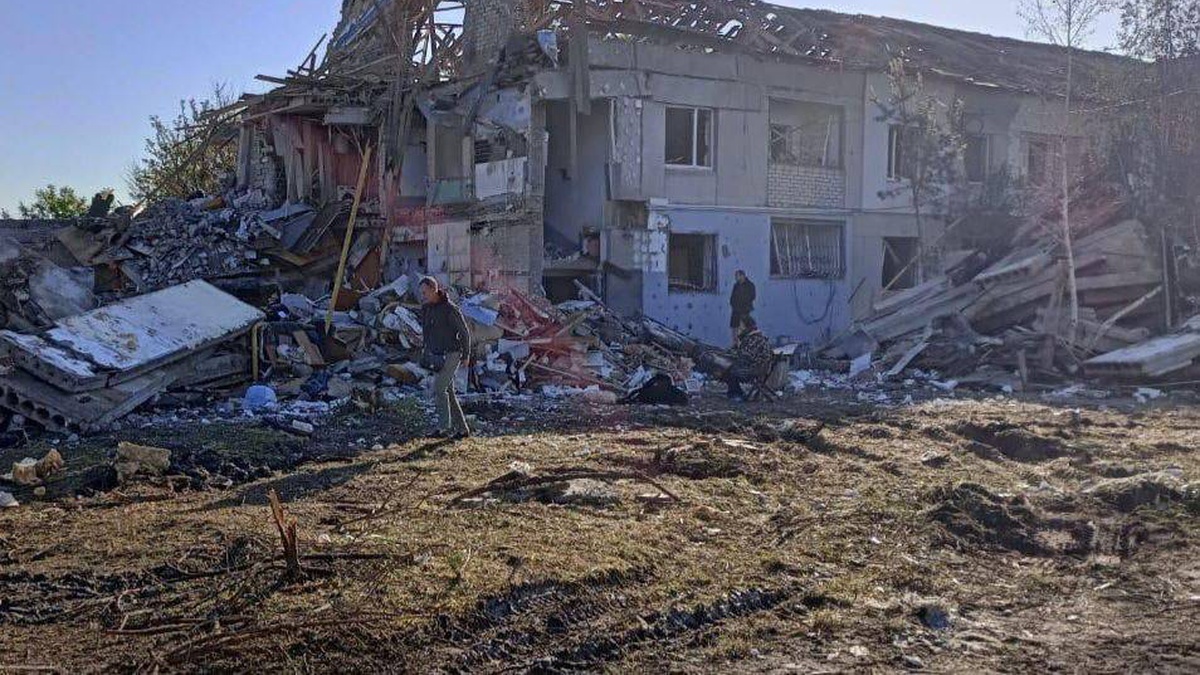 Дві двоповерхівки, між якими влучила ворожа ракета, частково зруйновані. 0564.ua »