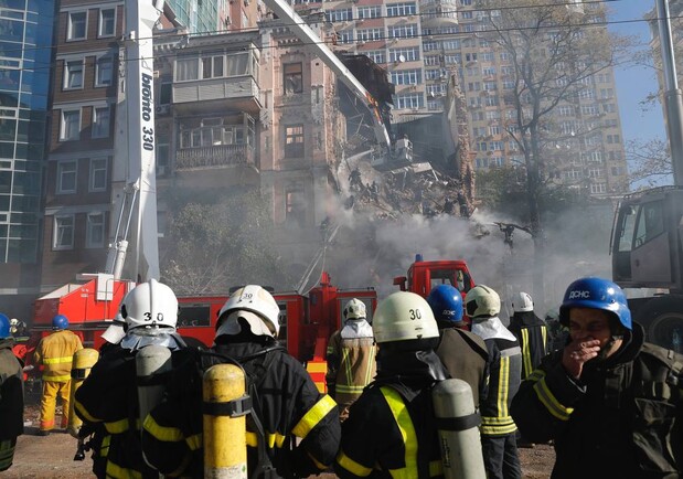 Жилой дом в центре Киева, который сегодня россияне атаковали иранским дроном-камикадзе Shahed-136, полностью разрушен news.liga.net »