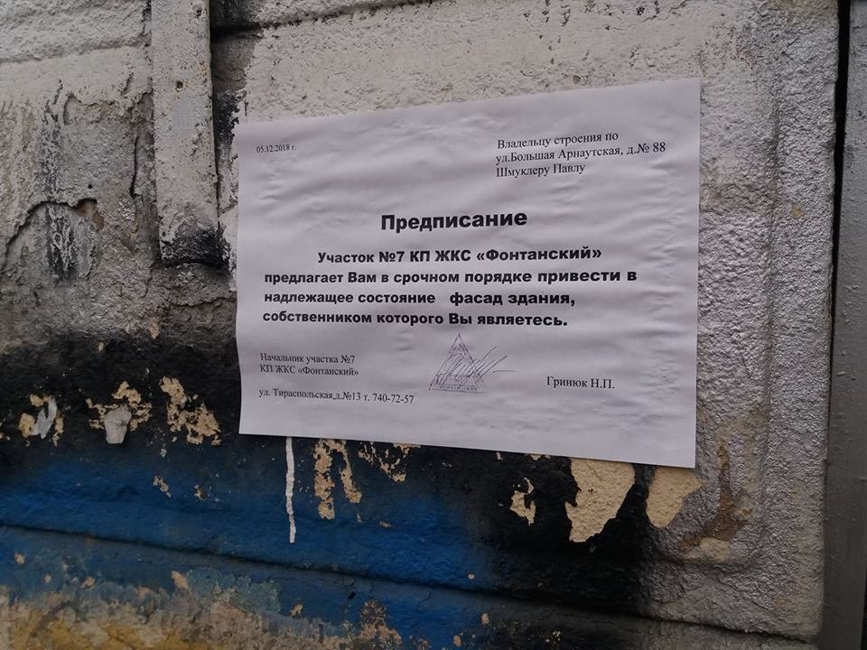 На фасаде рушащегося здания ЖЭК "оставил сообщение" владельцу. 048.ua »