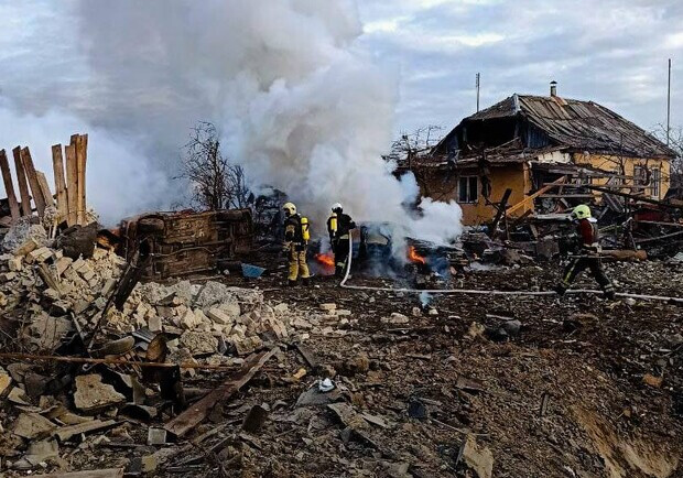 В результате атаки разрушены и повреждены по меньшей мере 12 жилых домов, возникли пожары. k.img.com.ua »