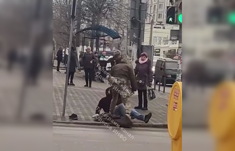 В Одессе военные жестко положили мужчину на землю: в сети пишут, что он сам затеял драку (видео)