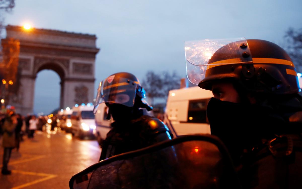 Против "желтых жилетов" в Париже прошел марш "красных шарфов". telegraf.com.ua »