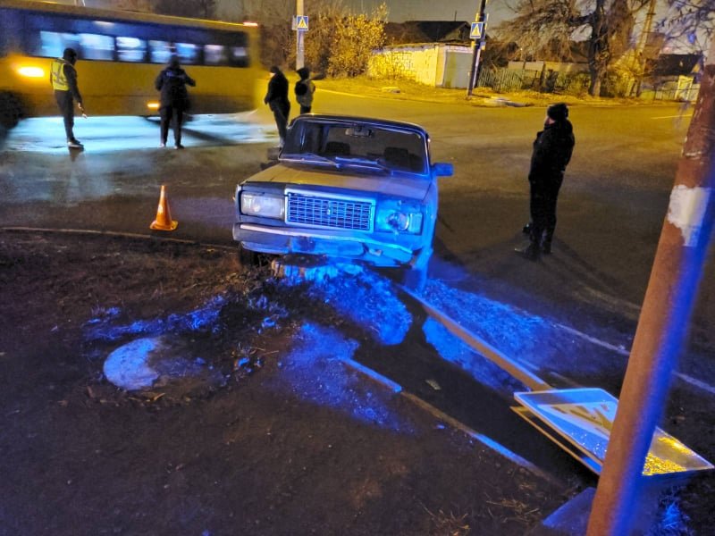 В Мариуполе молодой водитель ВАЗ протаранил дорожный знак и попал в больницу, - ФОТО
