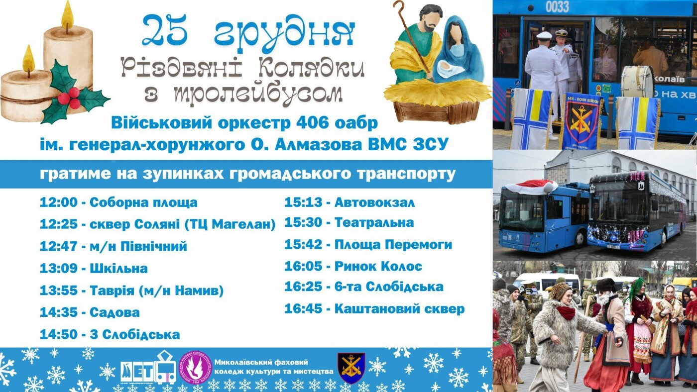Миколаєвом курсував святковий тролейбус: на зупинках зіграли різдвяні колядки, - ФОТО