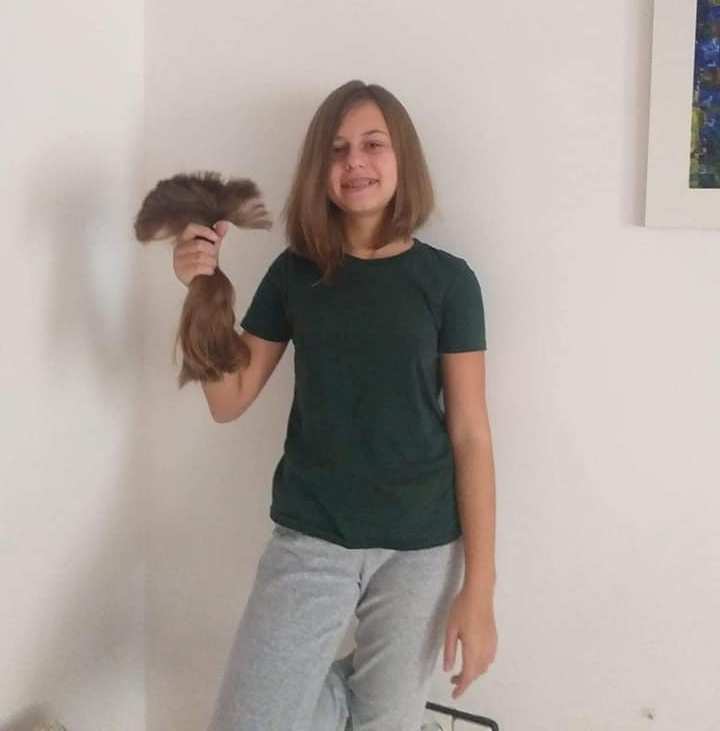 Девочка обрезала свои длинные волосы, чтобы помочь