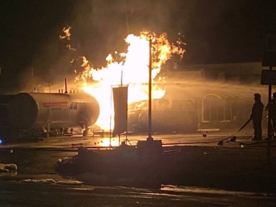 На АЗС горят газовая емкость и микроавтобус, на месте работают почти три десятка чрезвычайников.