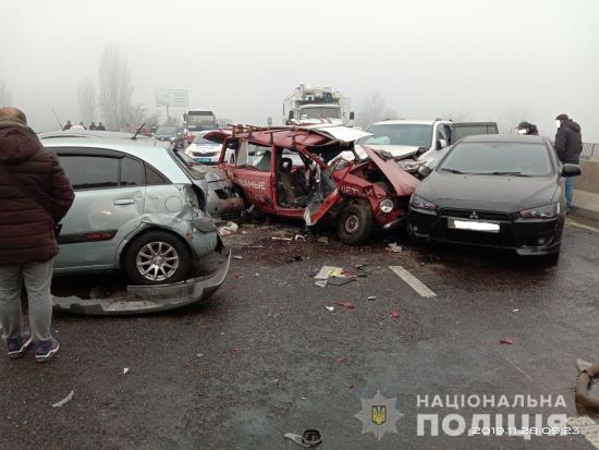 Аварии произошли в трех местах трассы Одесса - Киев недалеко друг от друга. В самом масштабном ДТП участвовали 11 авто.