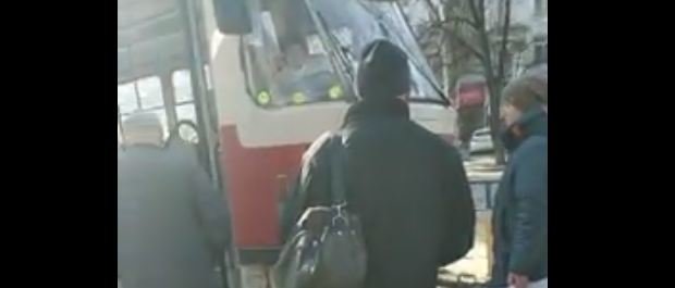 19 марта в центре Каменского пенсионеры блокировали трамвай.