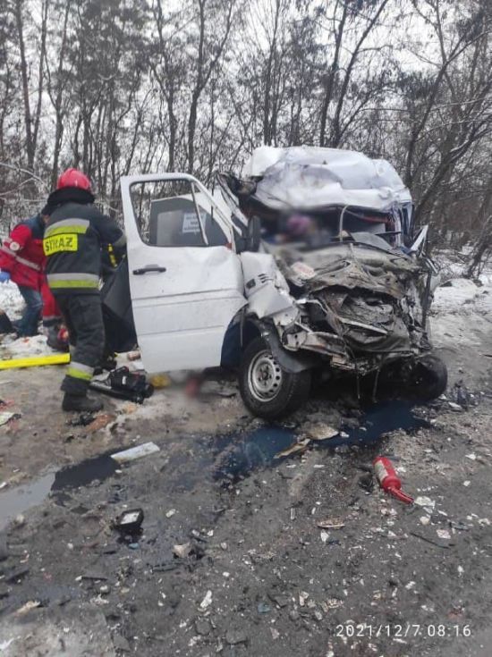 В селе Брусилов Черниговского района произошло столкновение грузовика с маршрутным автобусом, в результате чего погибли 11 человек и 8 травмированы, сообщили в пресс-службе ГосЧС. «7 декабря, около 7:55, вблизи с.