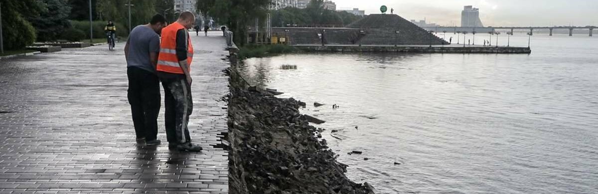 В Днепре перекрыли еще один участок Набережной из-за обвала.