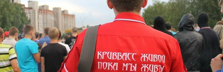 На митинг пришли запорожцы в вышиванках и с национальными флагами.