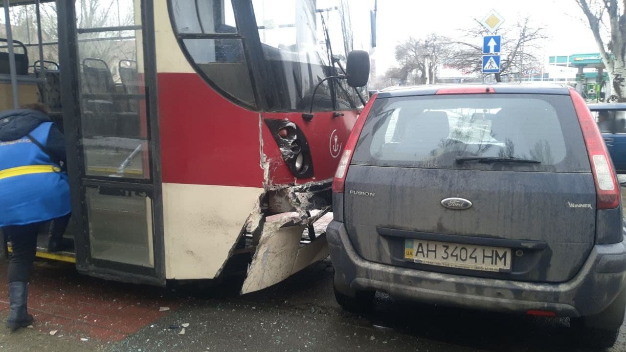 Трамвай врезался в легковой автомобиль