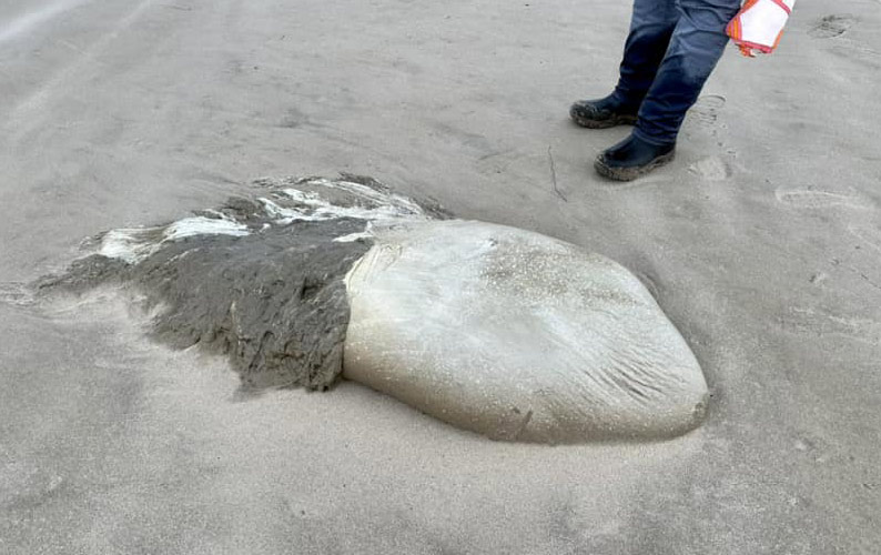 Жительница Портленда, прогуливая с собаками по пляжу, нашла то, что ей показалось большой медузой.