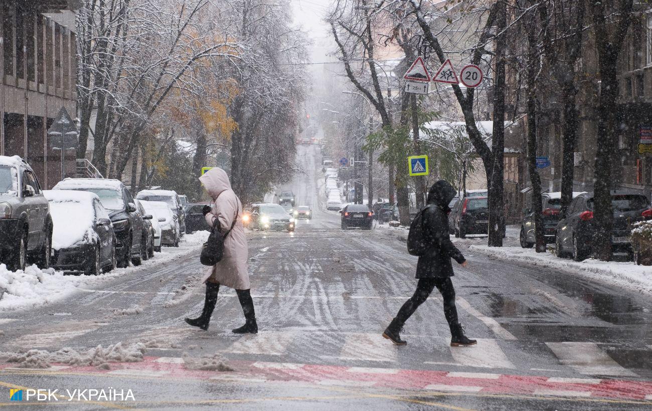 В ночь на 10 декабря в Киеве пошел мокрый снег. Коммунальные службы начали обработку дорог от гололеда.