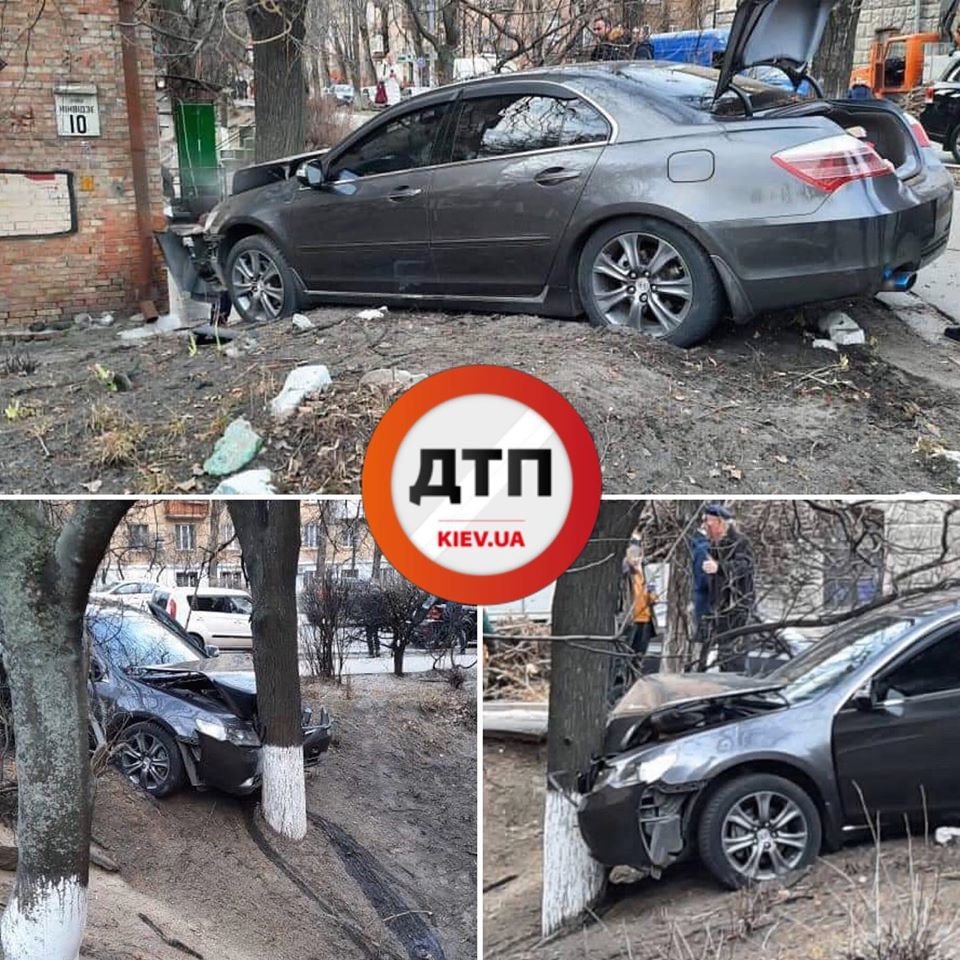 В Печерском районе Киева иномарка въехала в столб