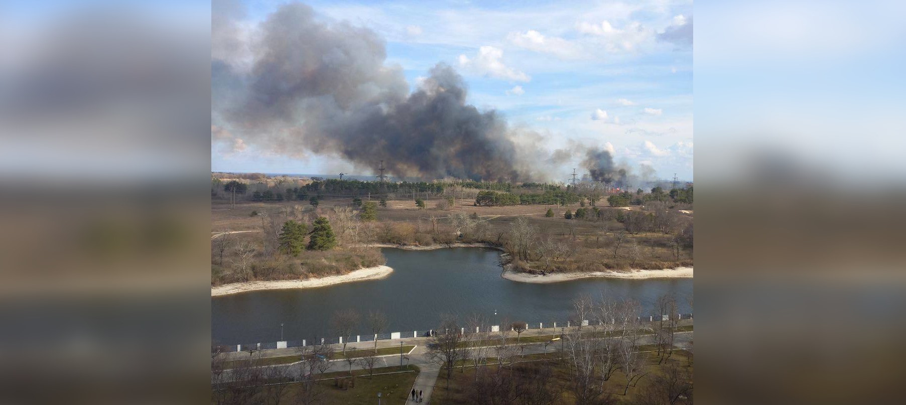 Очевидцы говорят, что пожар произошел в результате обстрела. РосСМИ пишут об "ударе зажигательными боеприпасами" по набережной и возгорании вдоль ЛЭП, которая питает город и насосную станцию.