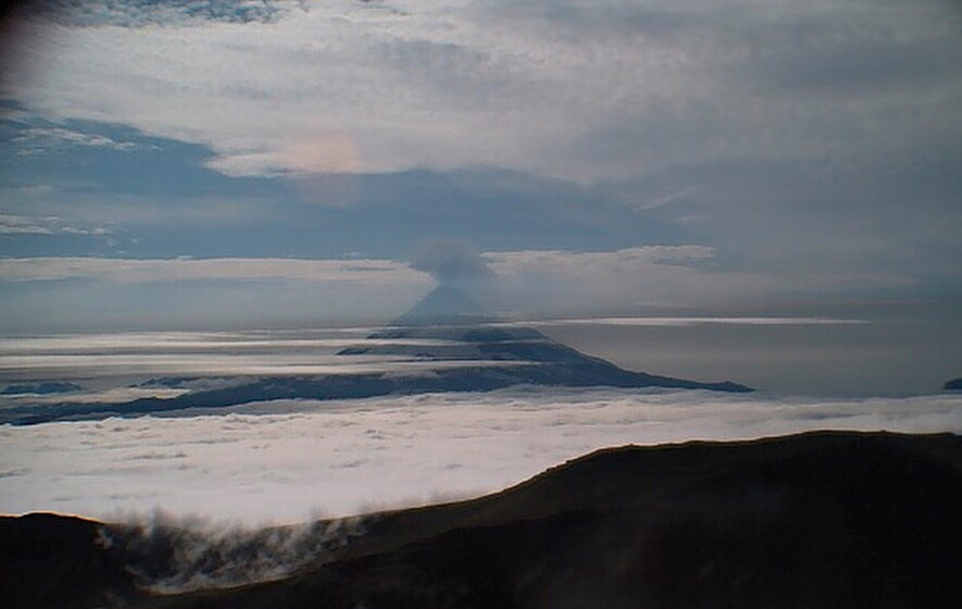 Небольшой поселок размером в 40 человек с трепетом наблюдал за тем, как вулкан Шишалдин, высочайшая вершина Алеутских островов, извергал в небо тонны пепла.